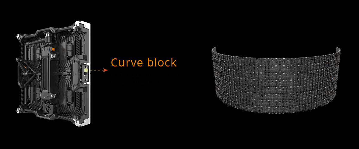 The GR series provides a new connection solution with a curve block that can be customized at any angle between 0 and 7.5 degrees, allowing for more flexibility in building curved screens.